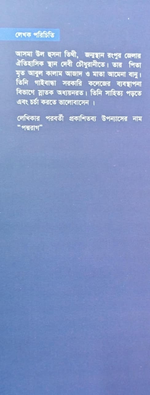 আপনি কি অলৌকিক রহস্য আর অতিপ্রাকৃত ঘটনার রোমাঞ্চ পছন্দ করেন? আসমা হুল হুসনা তিথী-র এই বইটি আপনাকে নিয়ে যাবে এমন এক জগতে যেখানে অন্ধকার কথা বলে।